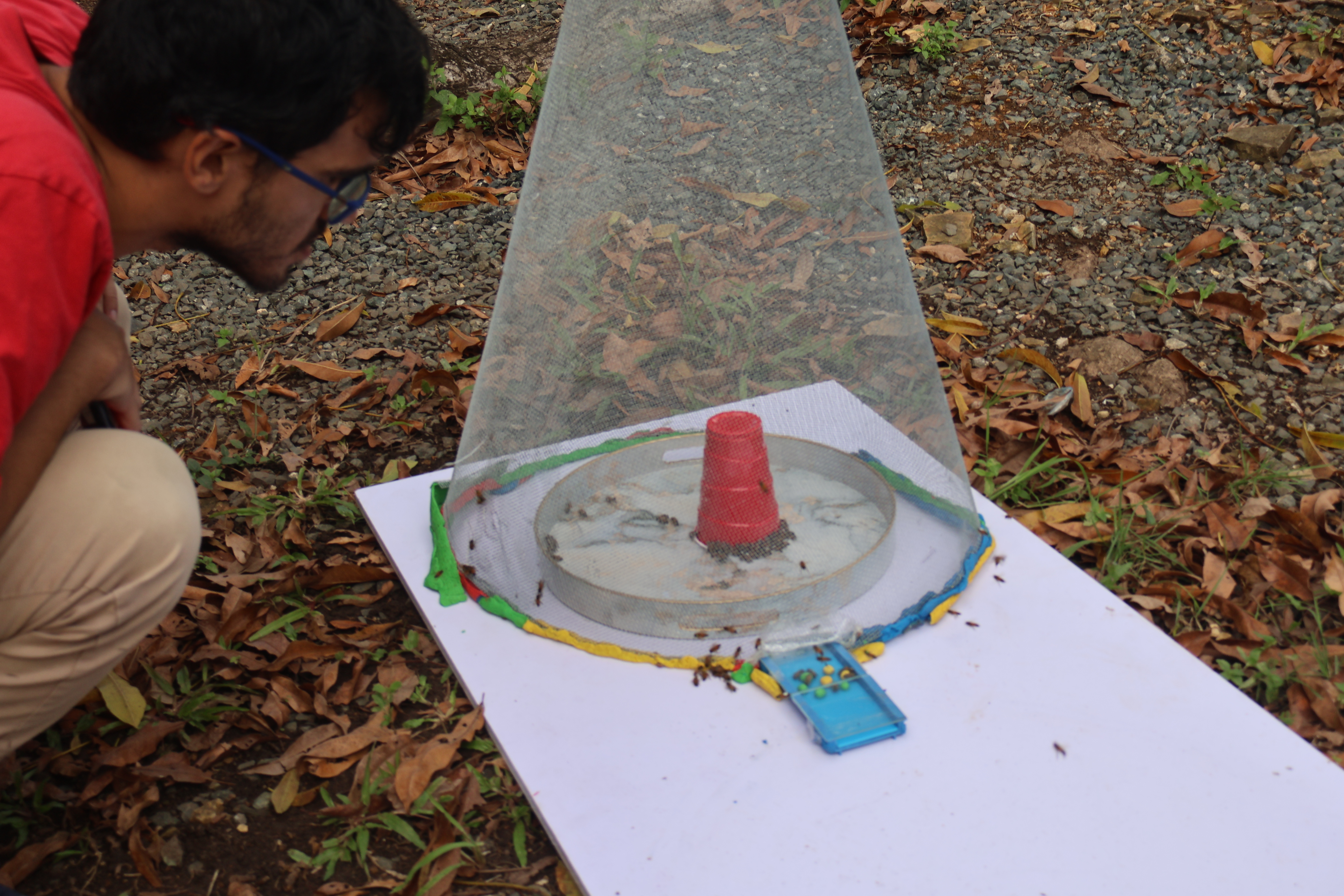 La idea es que se despierten, coman del plato, y regresen a sus colmenas. Como la comida del experimento es atractiva para las abejas, regresarán con un enjambre a buscar más.